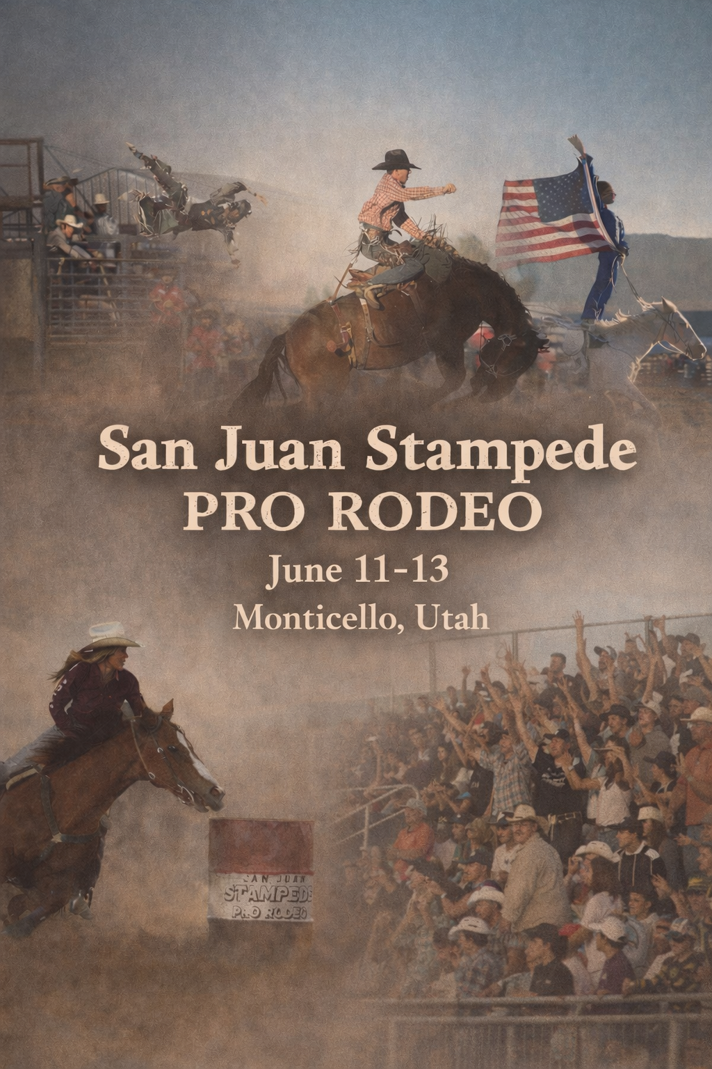 The San Juan Stampede PRCA rodeo is back June 11,12 & 13th, 2026 and more exciting then ever.
